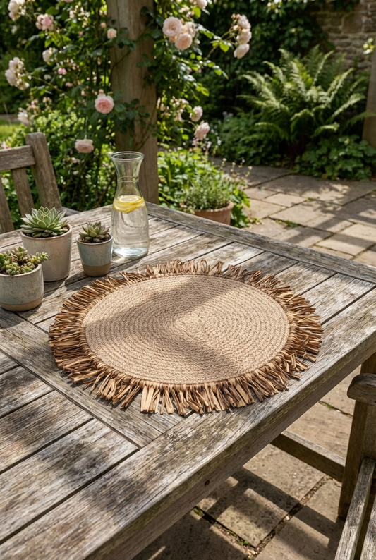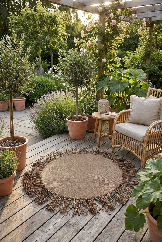 Bohem Rafya Püsküllü El Yapımı Jüt Supla Krem 30cm