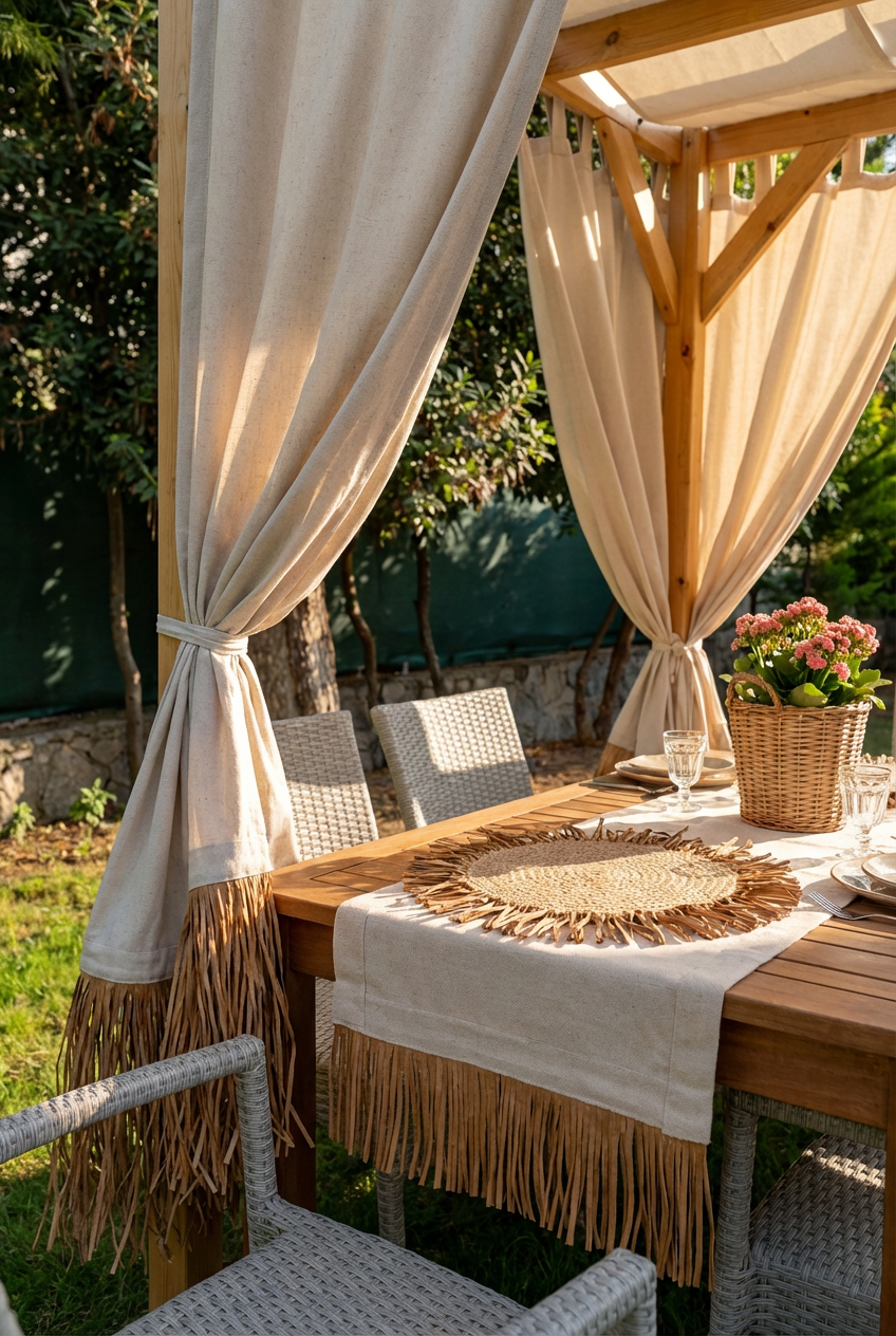 Bohem Rafya Püsküllü Doğal Kumaş Perde Bej 95x140 cm