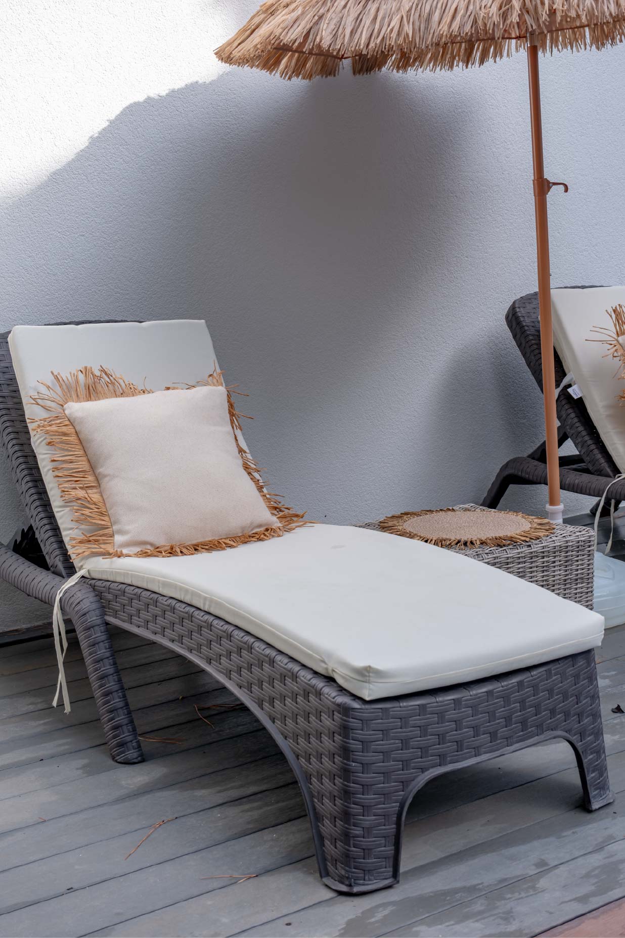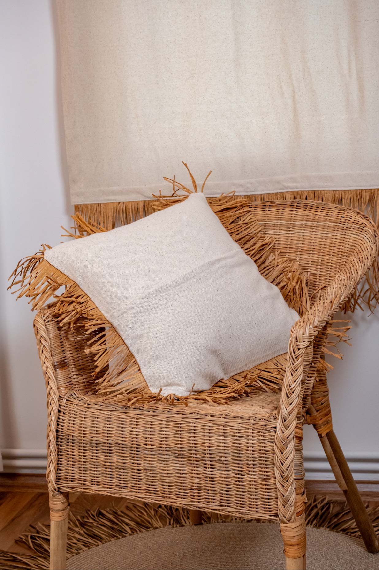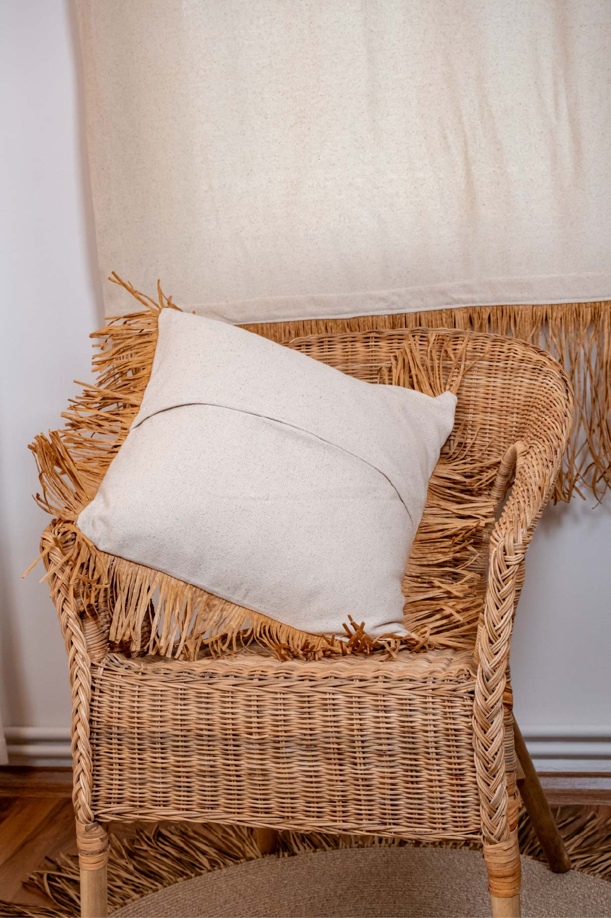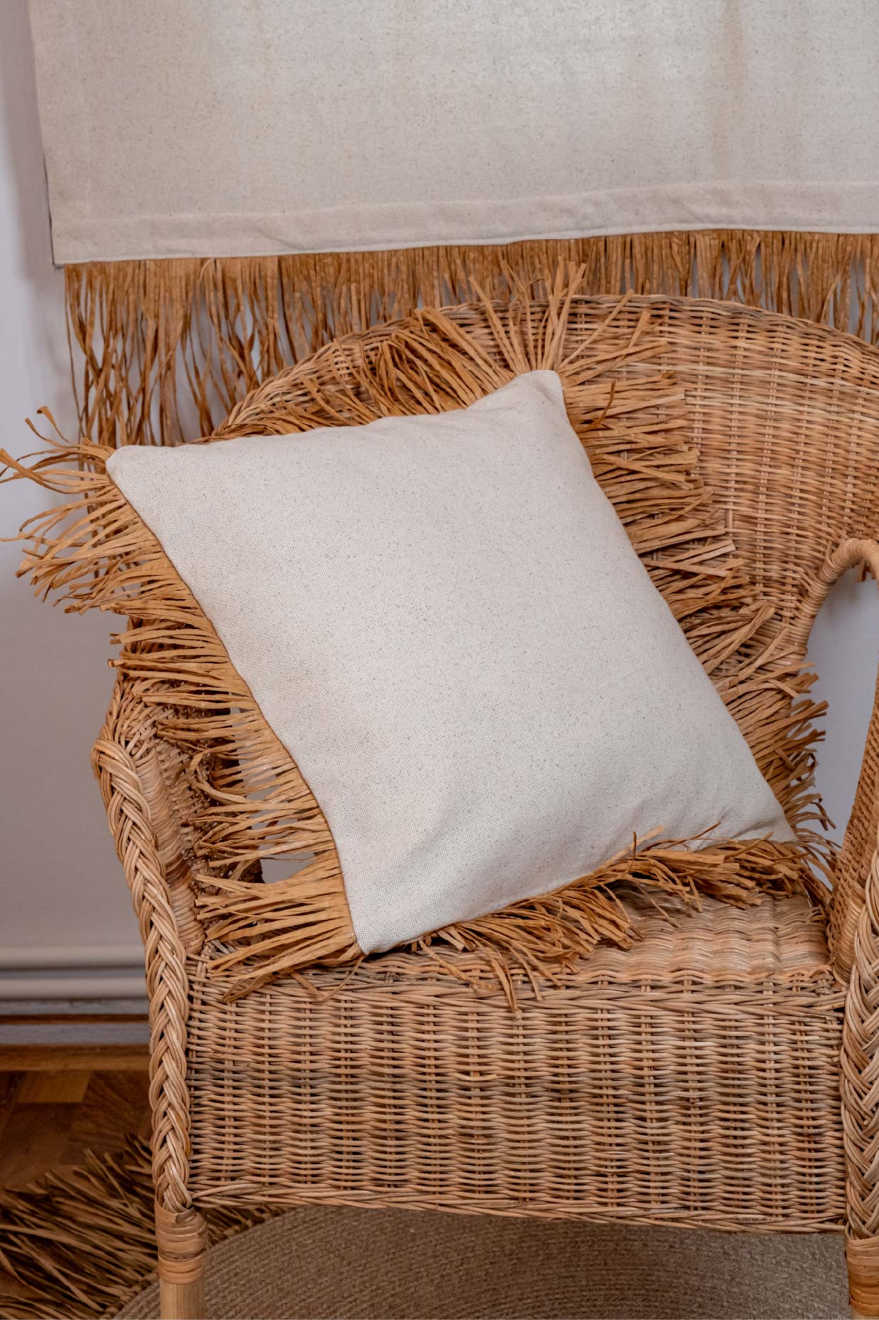 Bohem Rafya Püsküllü Doğal Kumaş Kırlent Kılıfı Bej 45x45 cm