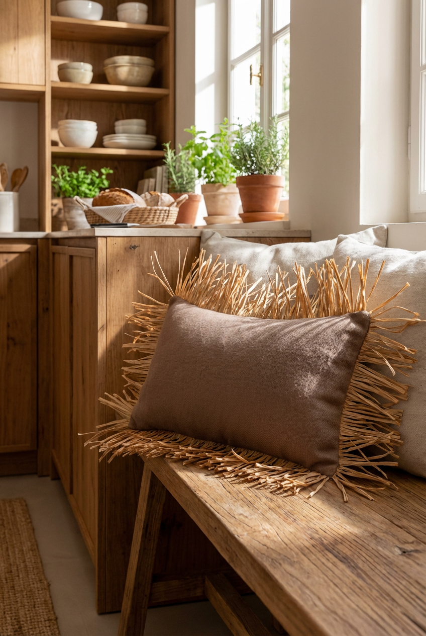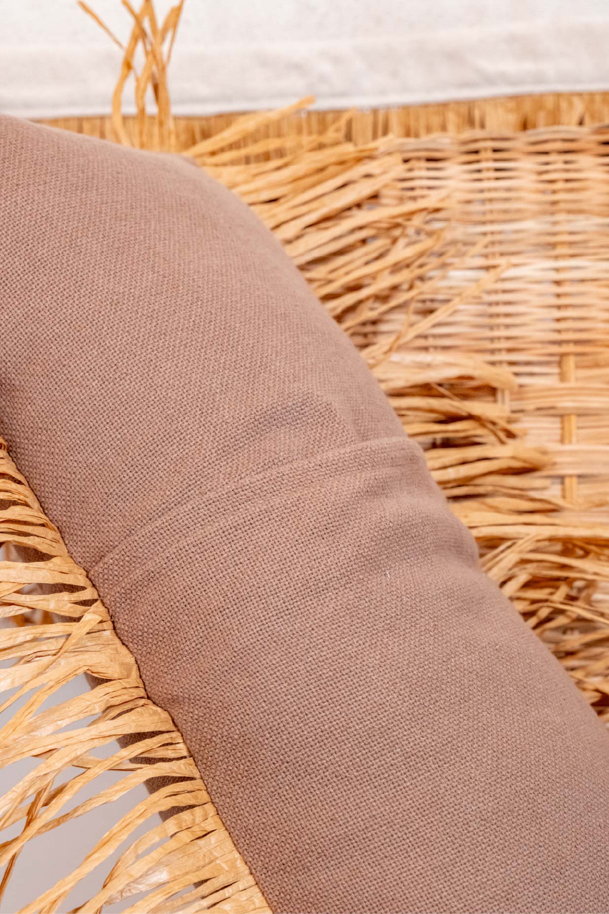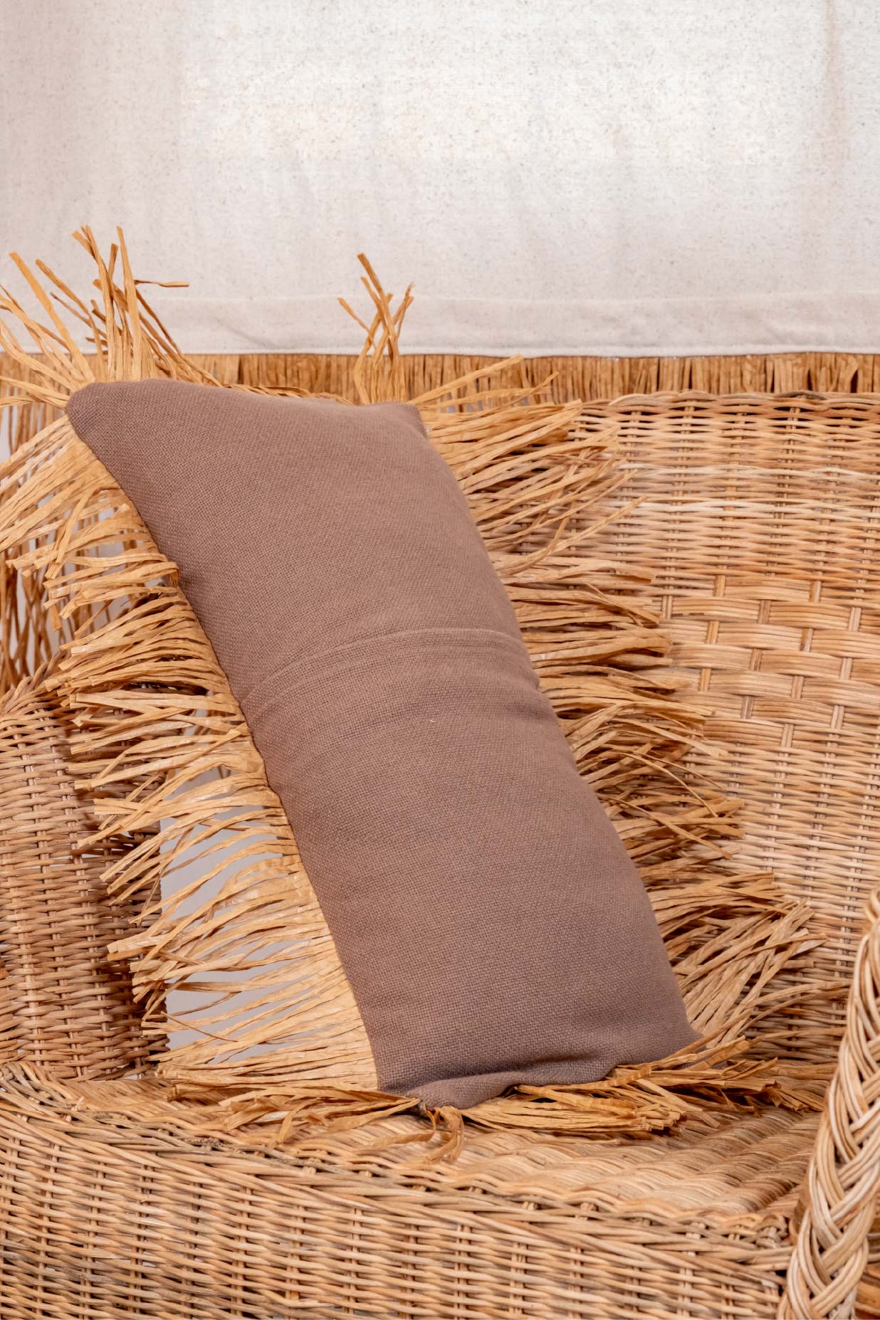 Bohem Rafya Püsküllü Doğal Kumaş Kırlent Kılıfı Kahve 25x50 cm