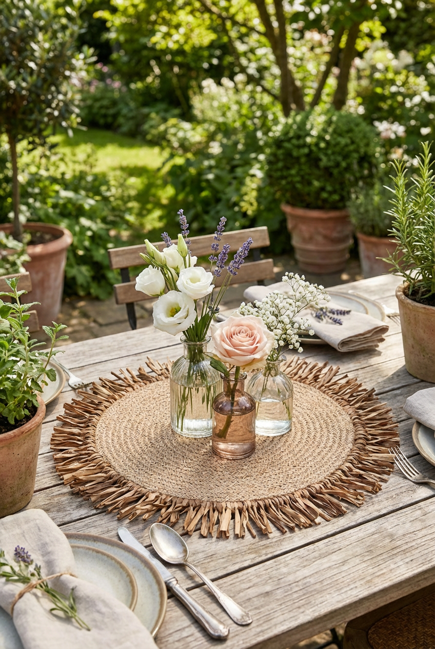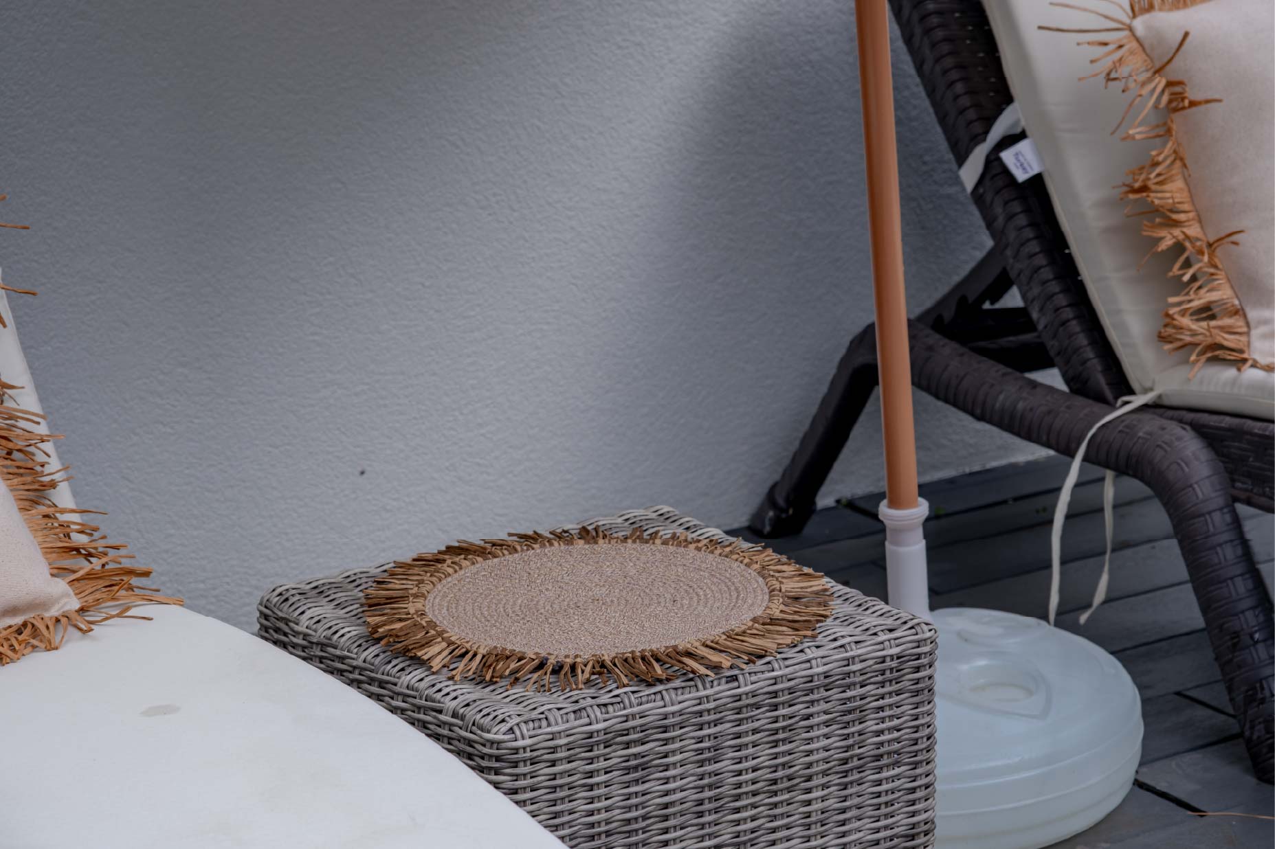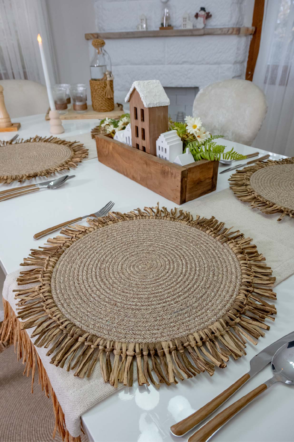 Bohem Rafya Püsküllü El Yapımı Jüt Supla Krem 30cm