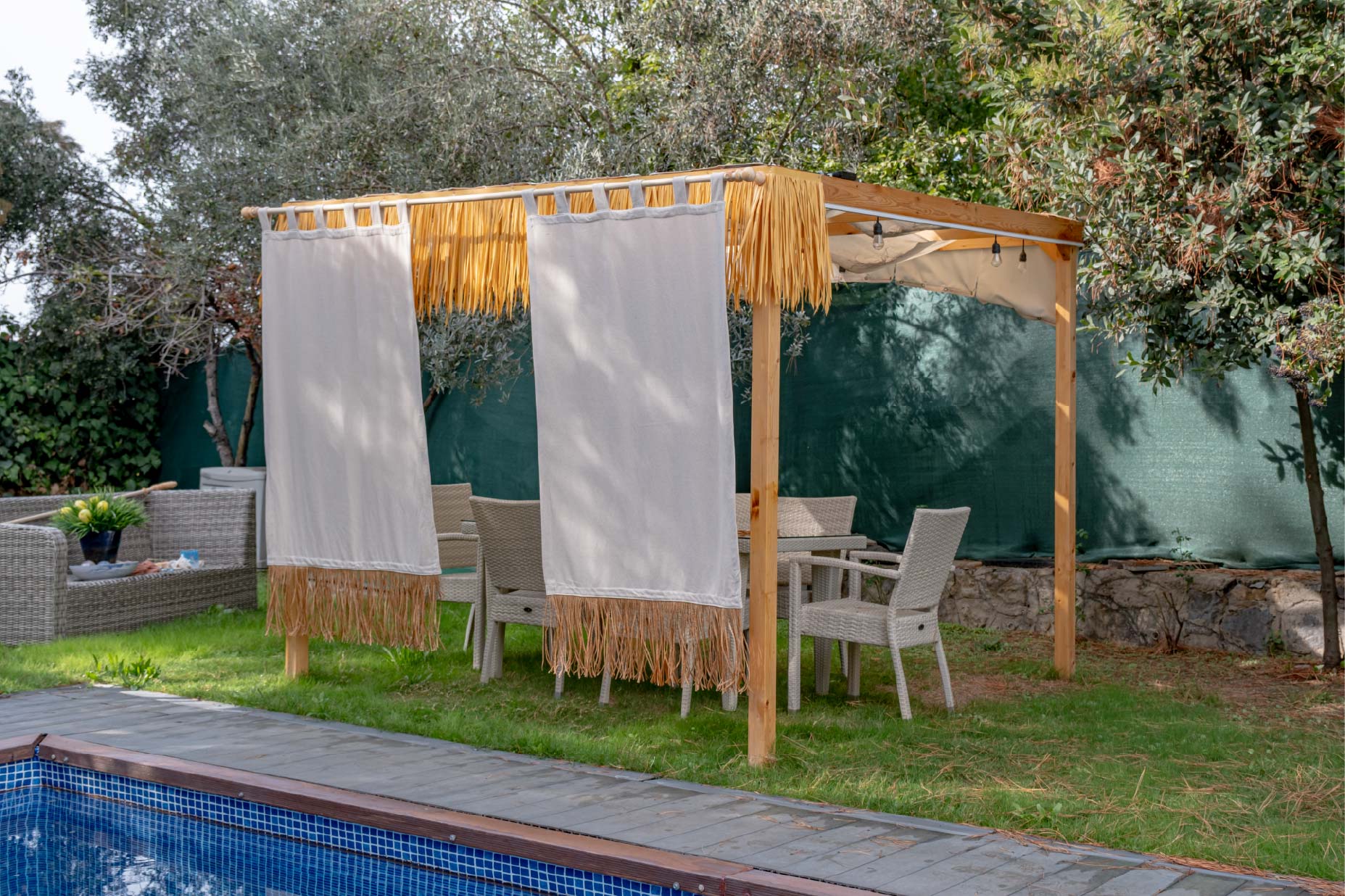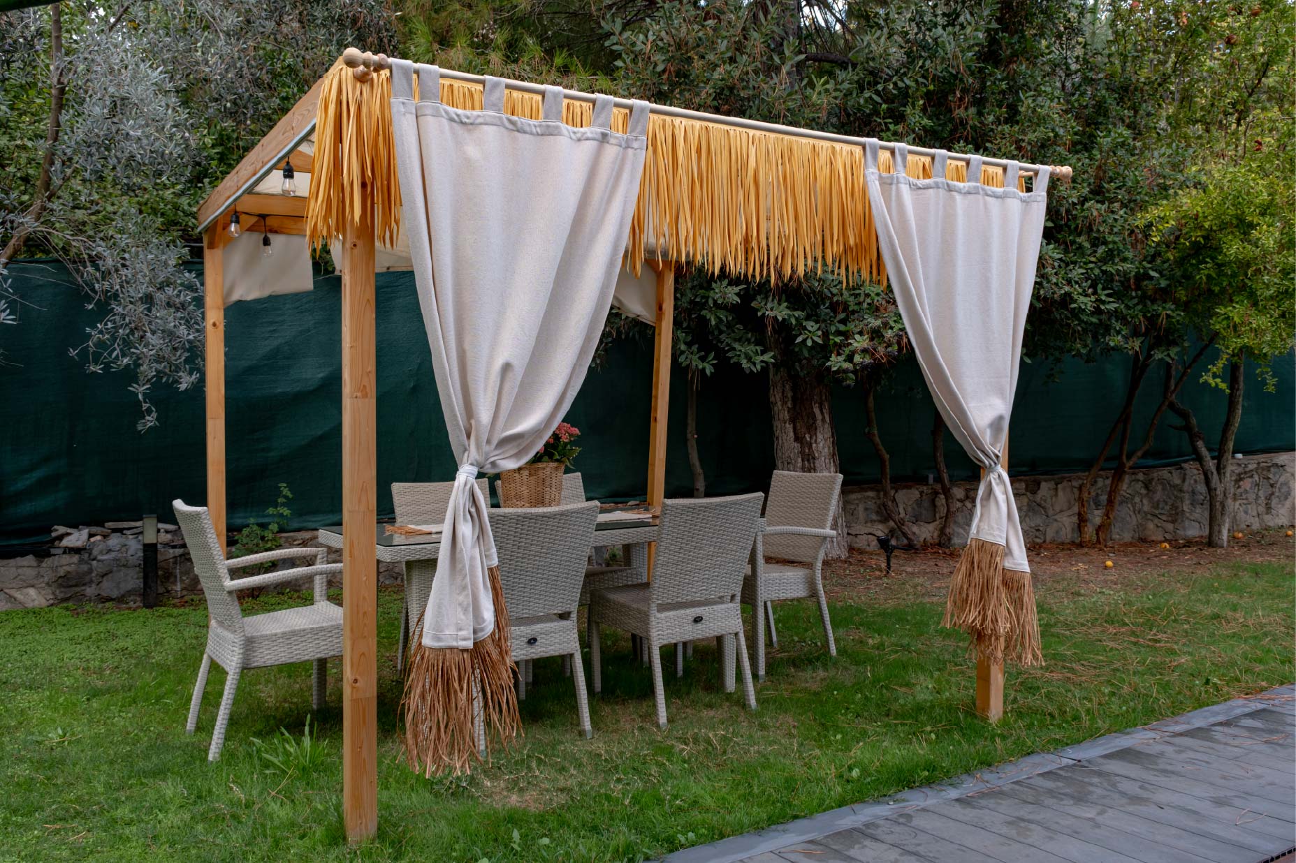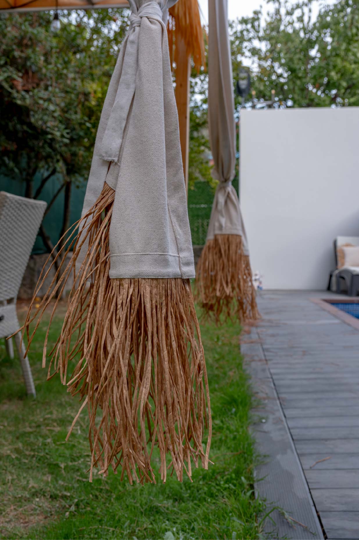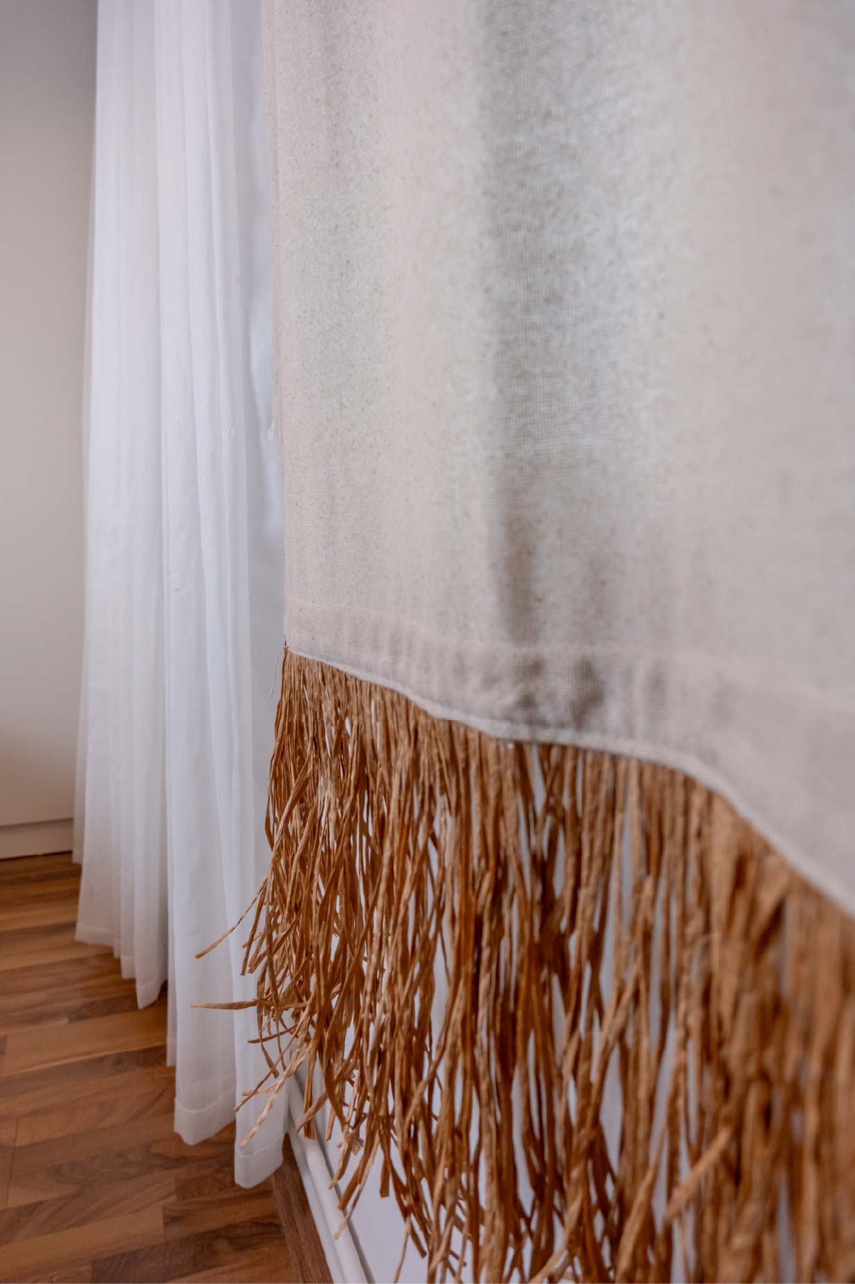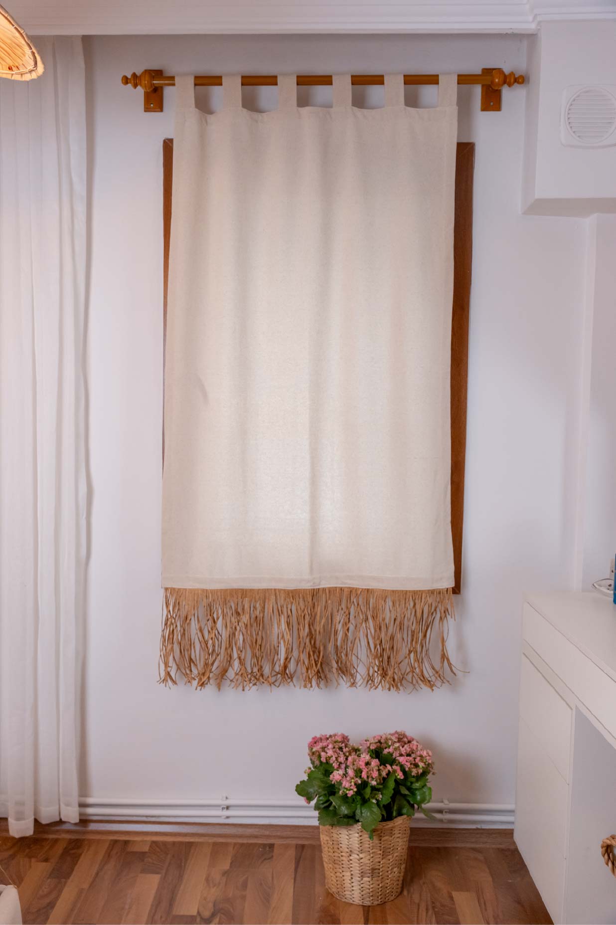 Bohem Rafya Püsküllü Doğal Kumaş Perde Bej 95x140 cm