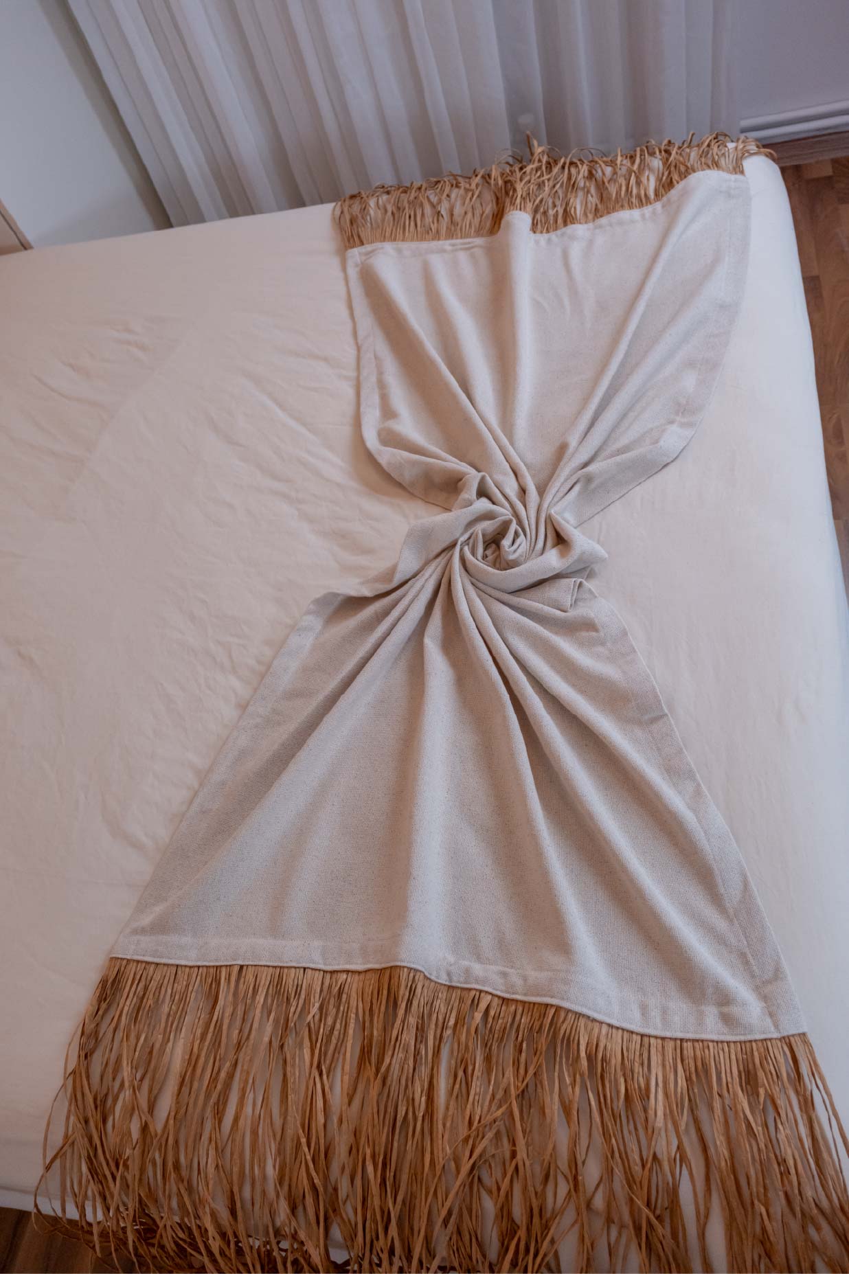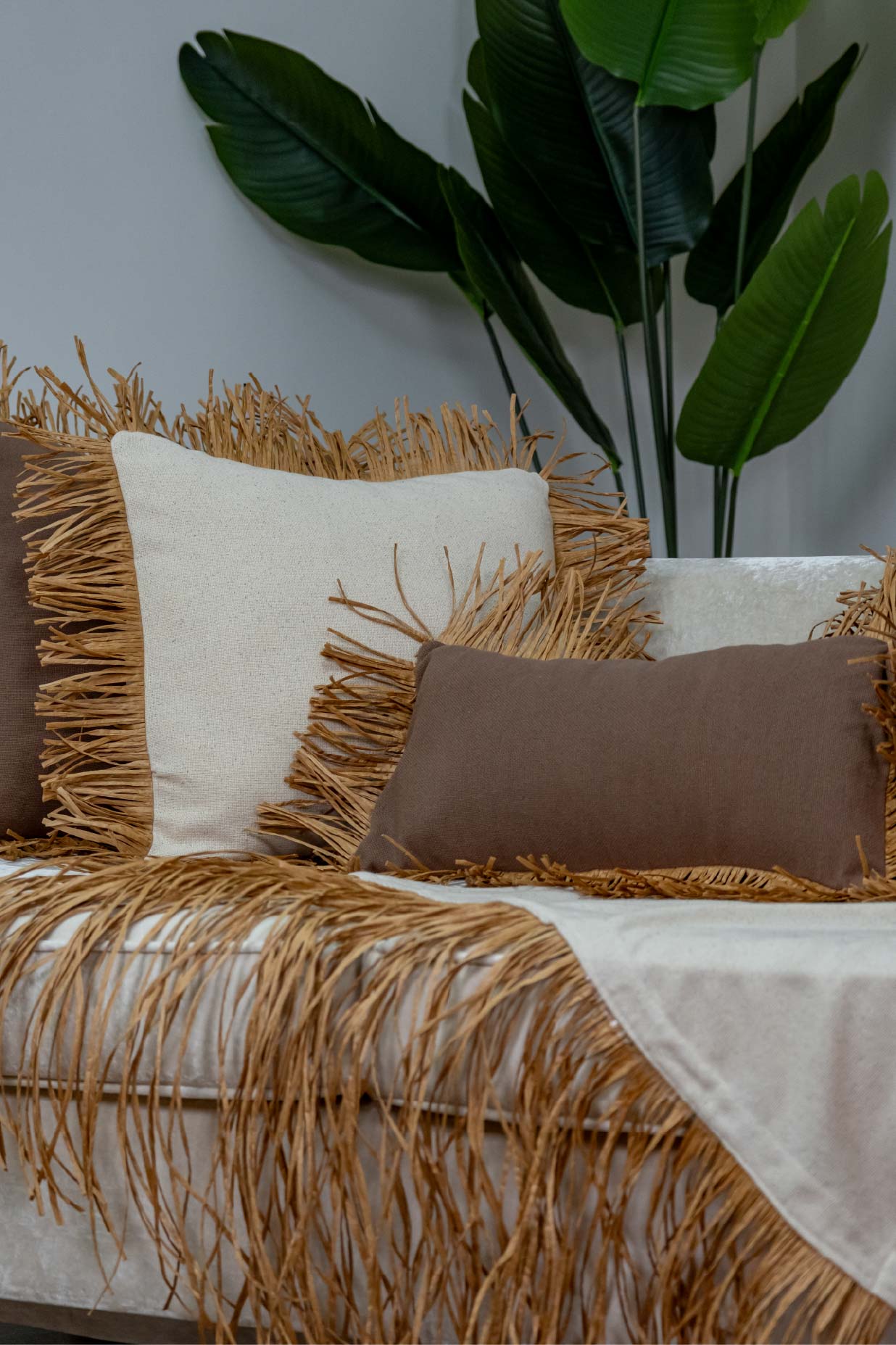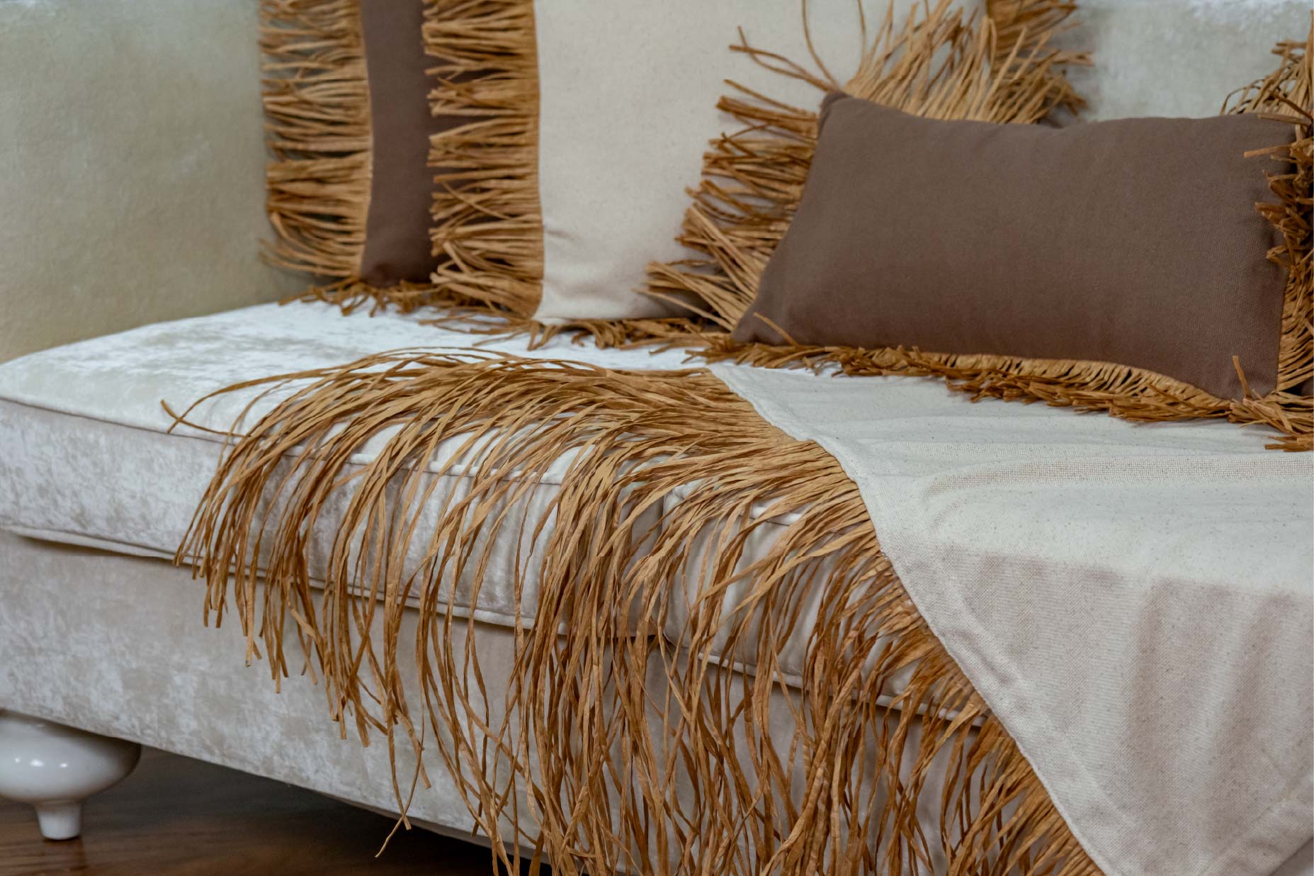 Bohem Rafya Püsküllü Doğal Kumaş Yatak-Koltuk Şalı 80x160 cm